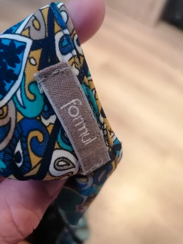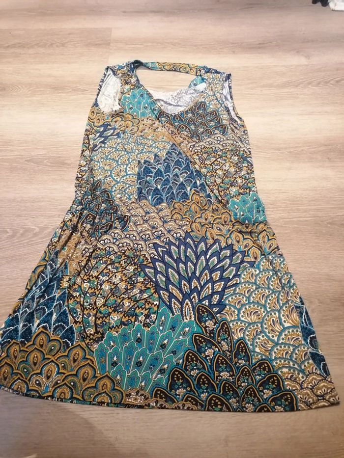 Bonjour, je vends cette robe sans manche dans les tons de bleu de la marque Formul taille 40 en très bon état. Lavé maison non fumeur.