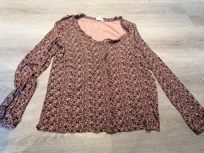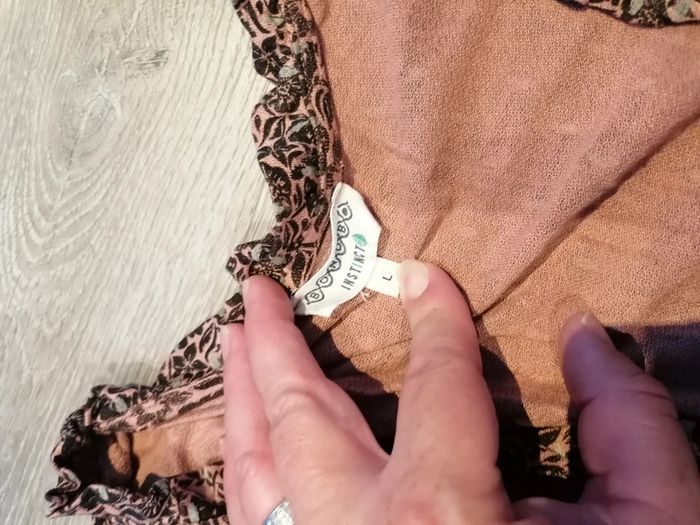 Bonjour, je vends ce tee shirt à manches longues dans les tons de vieux rose/marron de la marque Bonobo taille L en très bon état. Lavé maison non fumeur.