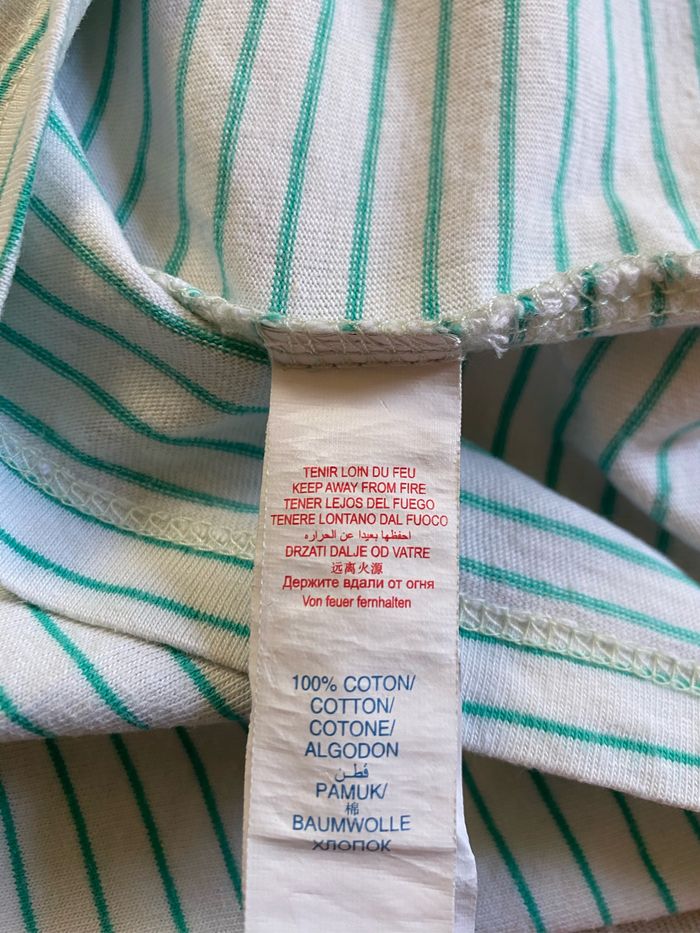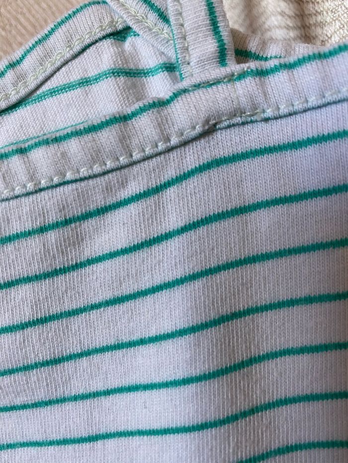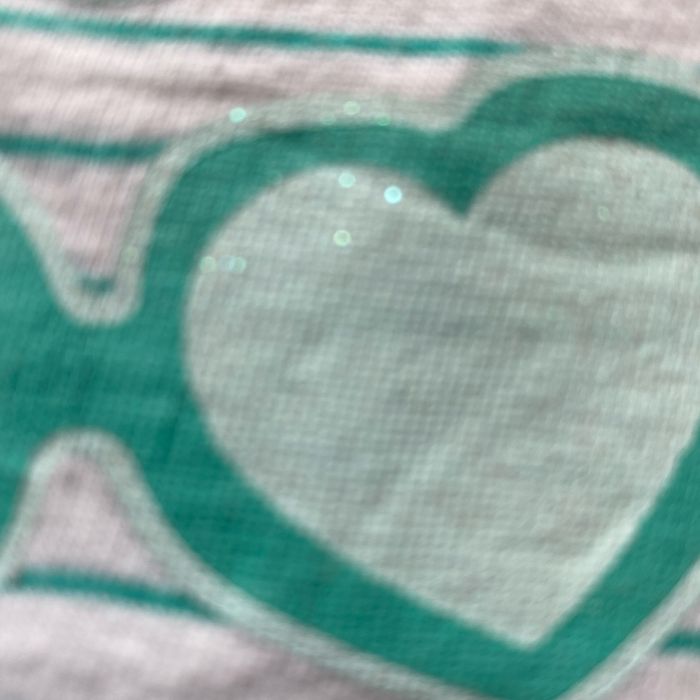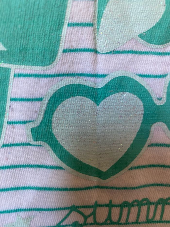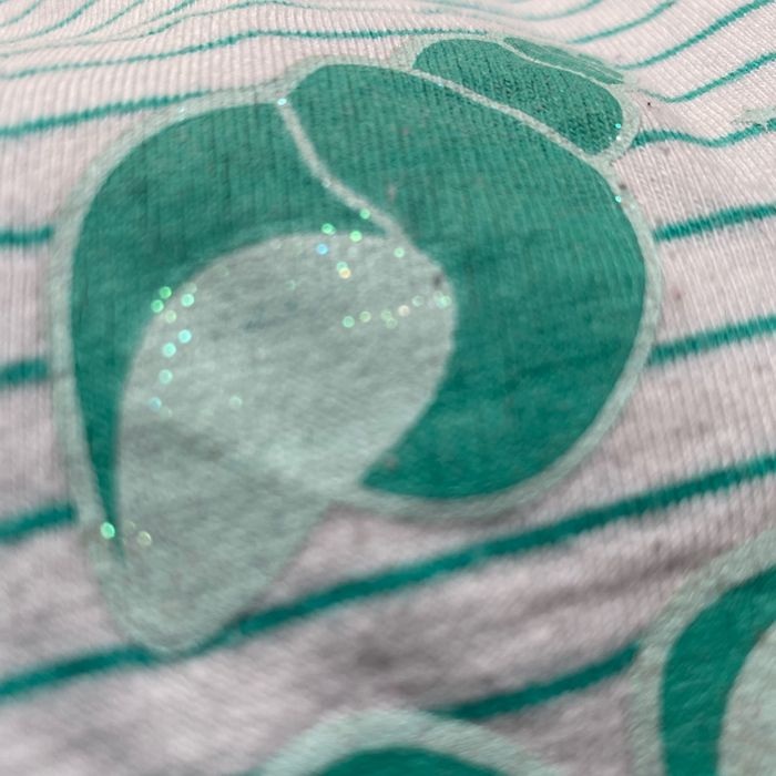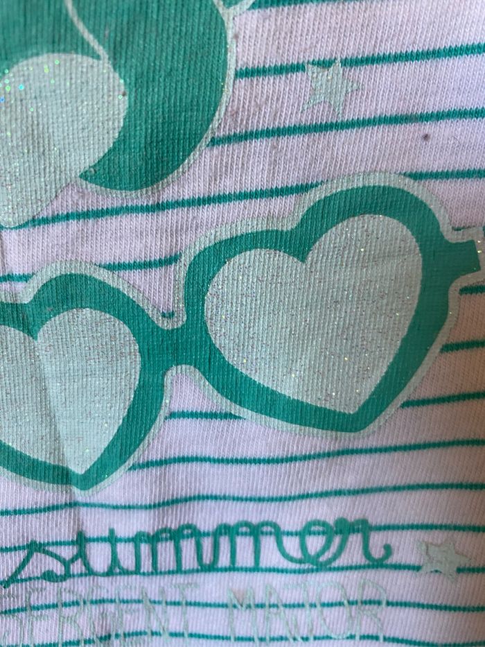 T-shirt à bretelles débardeur Blanc fines rayures vertes Sérigraphie devant pailletée lunettes coeur coquillage glace esquimau Taille 6 ans 116 cm Sergent Major