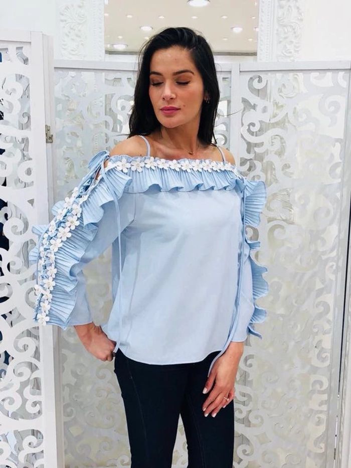 Superbe top a manches avec ses ouvertures et ses fleurs