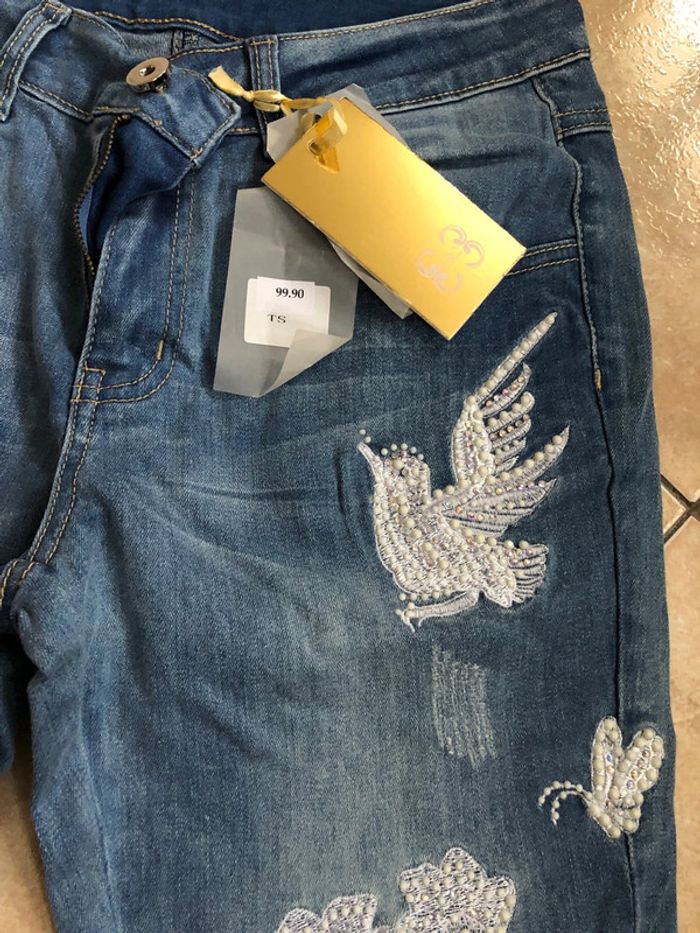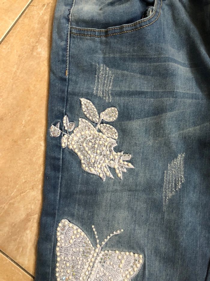 Superbe jeans avec ses broderies et ses perles