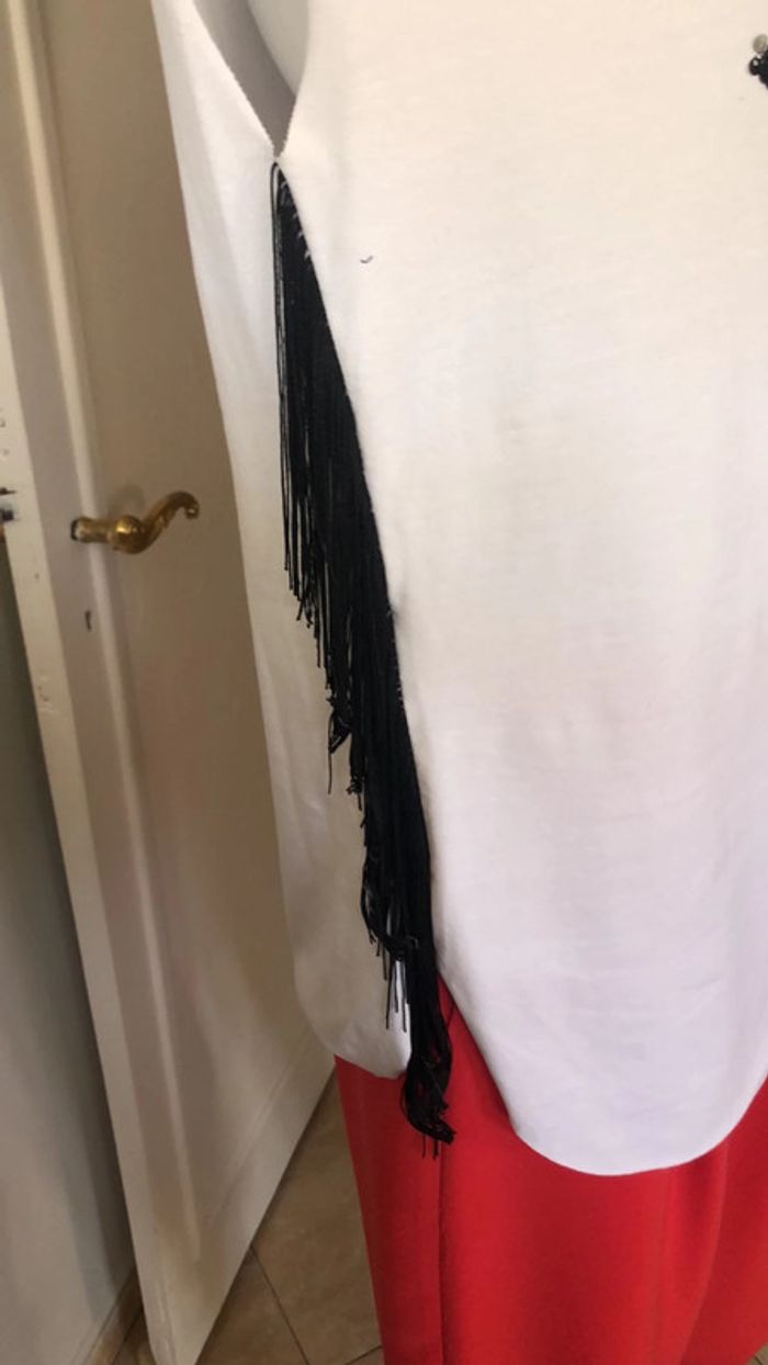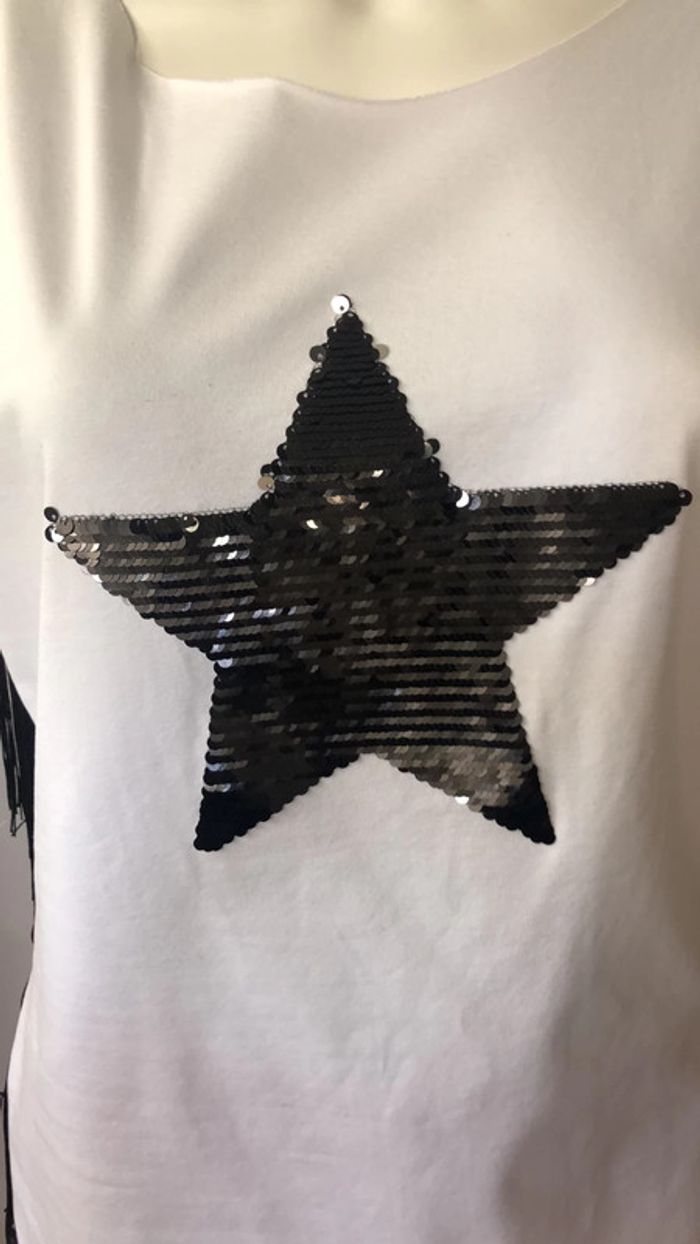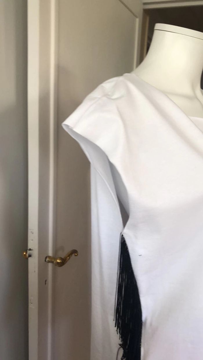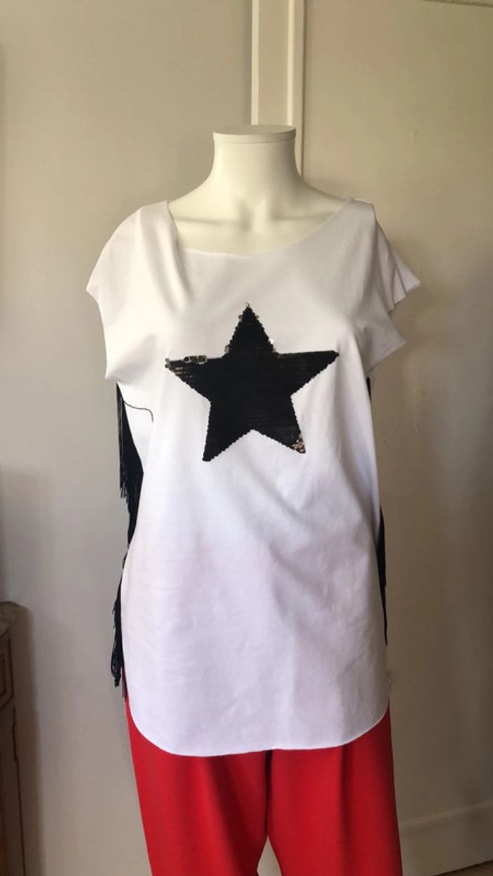 teeshirt long de marque italienne avec ses sequins t ses franges sur le côté