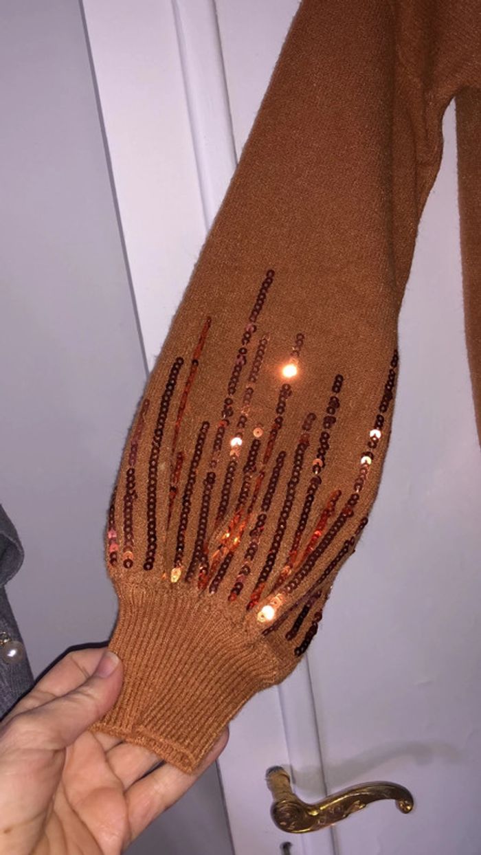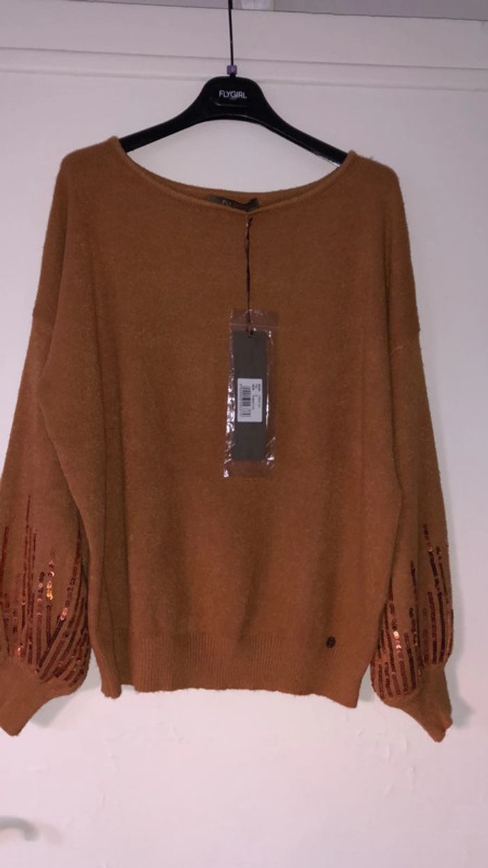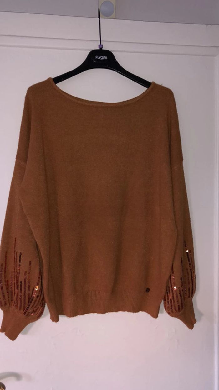 pull de marque italienne originale avec ses manches finition sequins et sa superbe couleur le rend très originale taille s mais peux convenir à un m