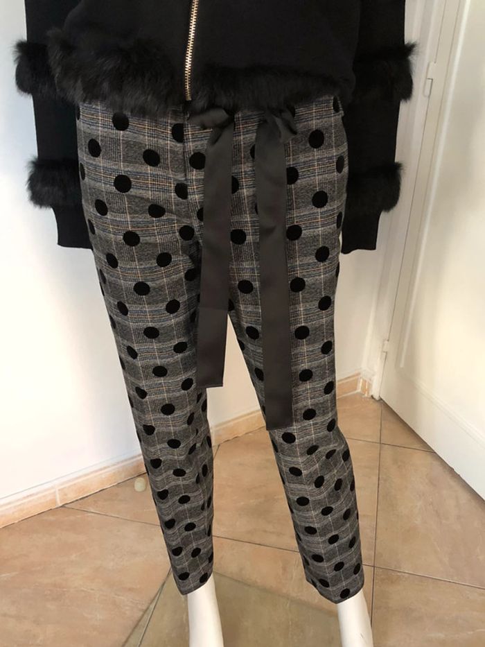 superbe pantalon chaud et agréable à porter de marque italienne taille haute ceinture en satin