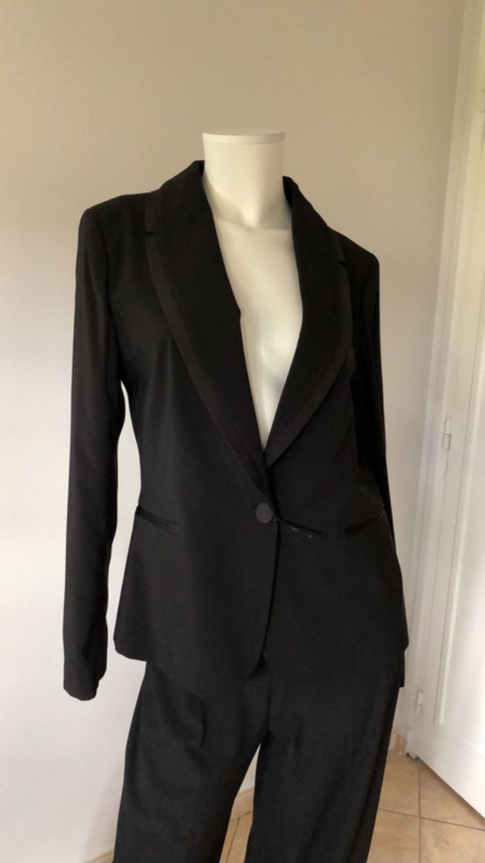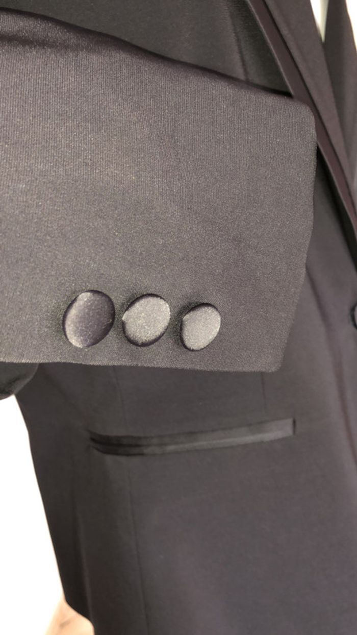 superbe veste smoking très originale et élégante avec son satin sur le col , les boutons et le ourlet des pochettes de marque italienne
