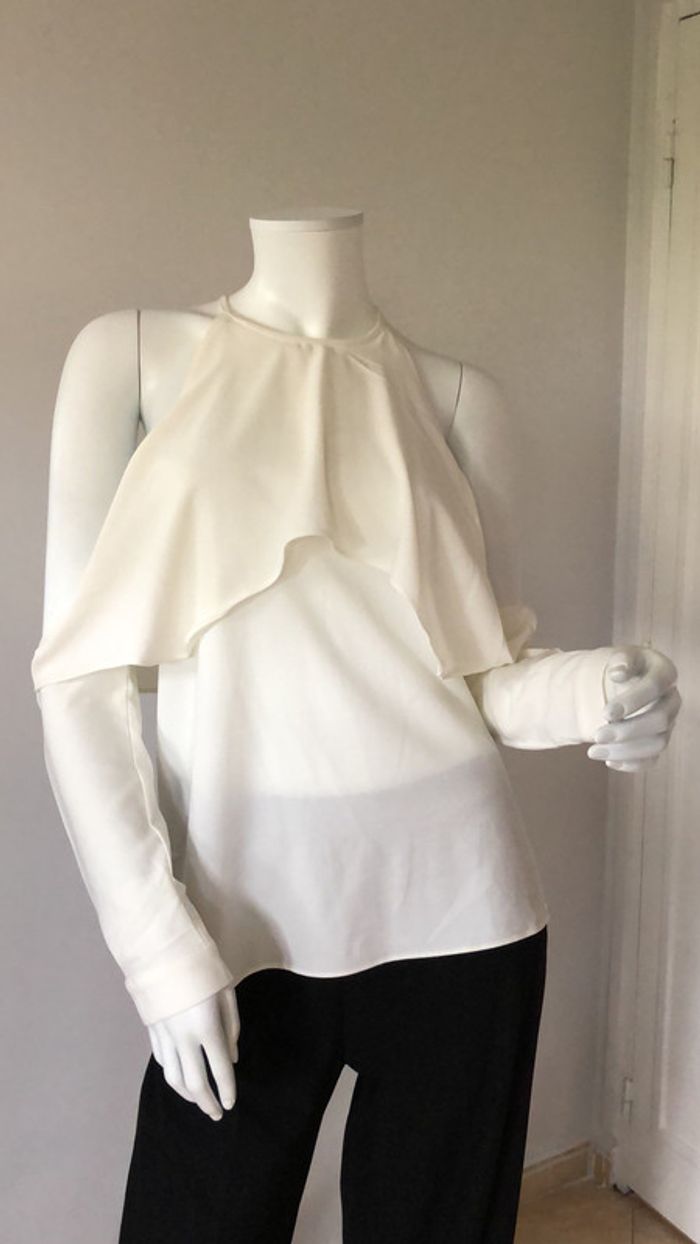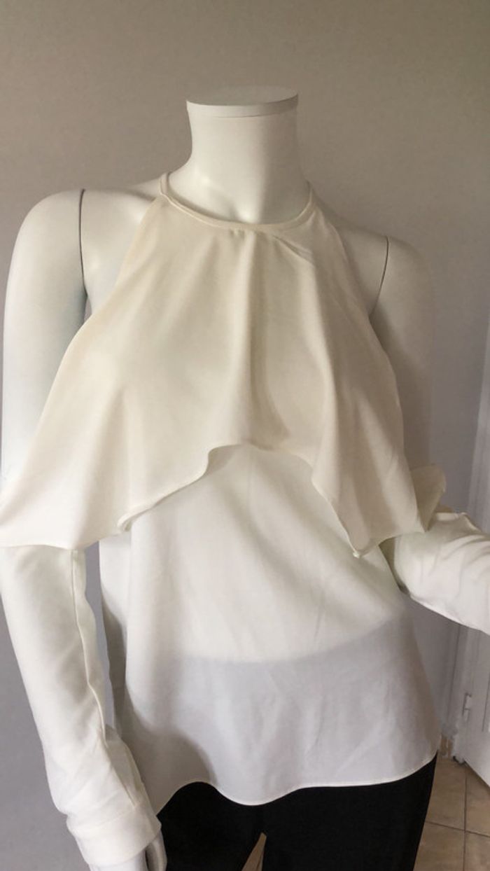 blouse à manches semi ouverte avec son drapé sur le devant et sur l arrière la rende très originale de marque italienne
