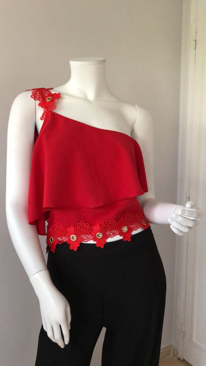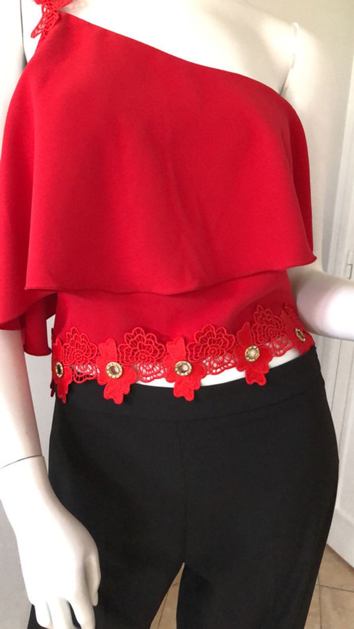 magnifique haut avec sa bretelle en dentelle qui viens faire le rappel de la dentelle en bas