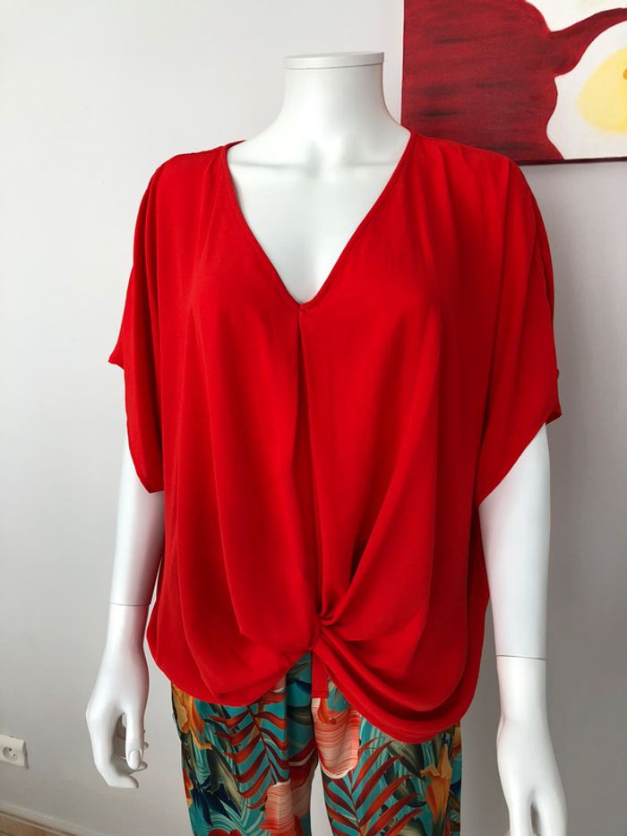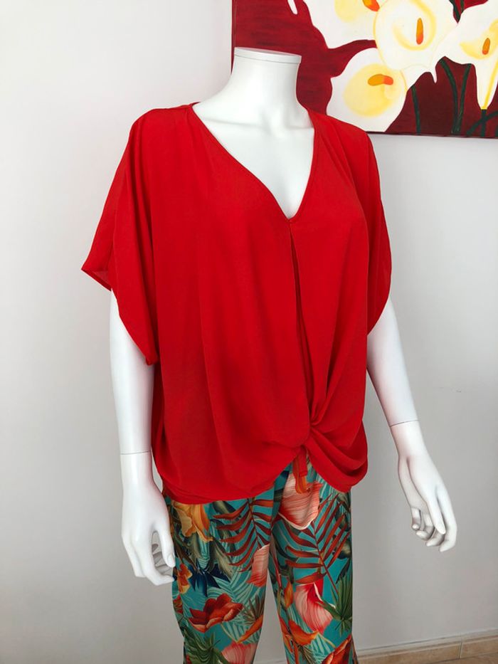 superbe haut fluide et léger avec son col en V composition 100% polyester de marque italienne