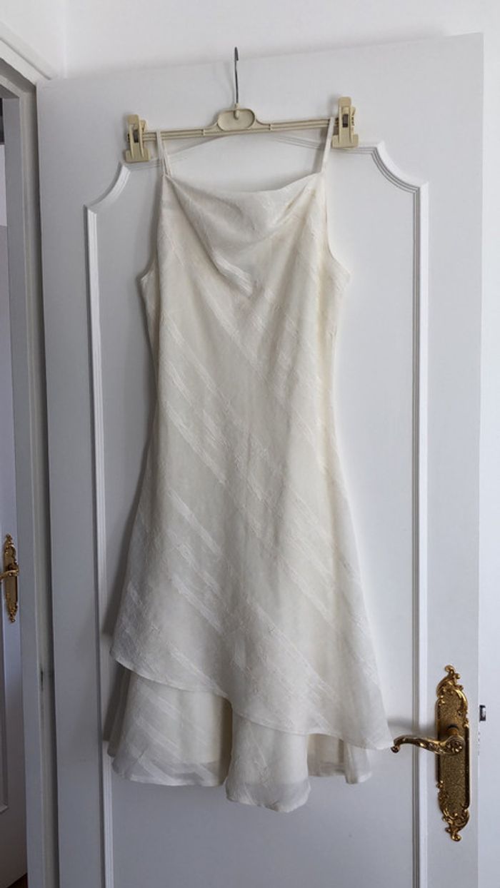 magnifique robe portée une fois de fabrication française de couleur ecrue à bretelles
