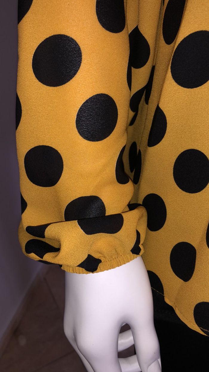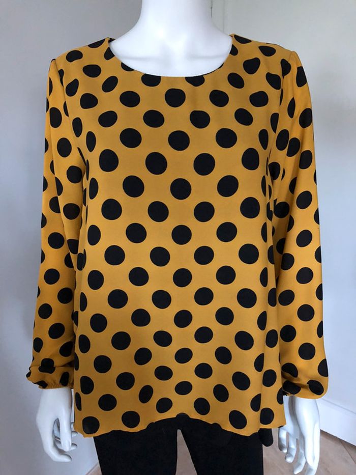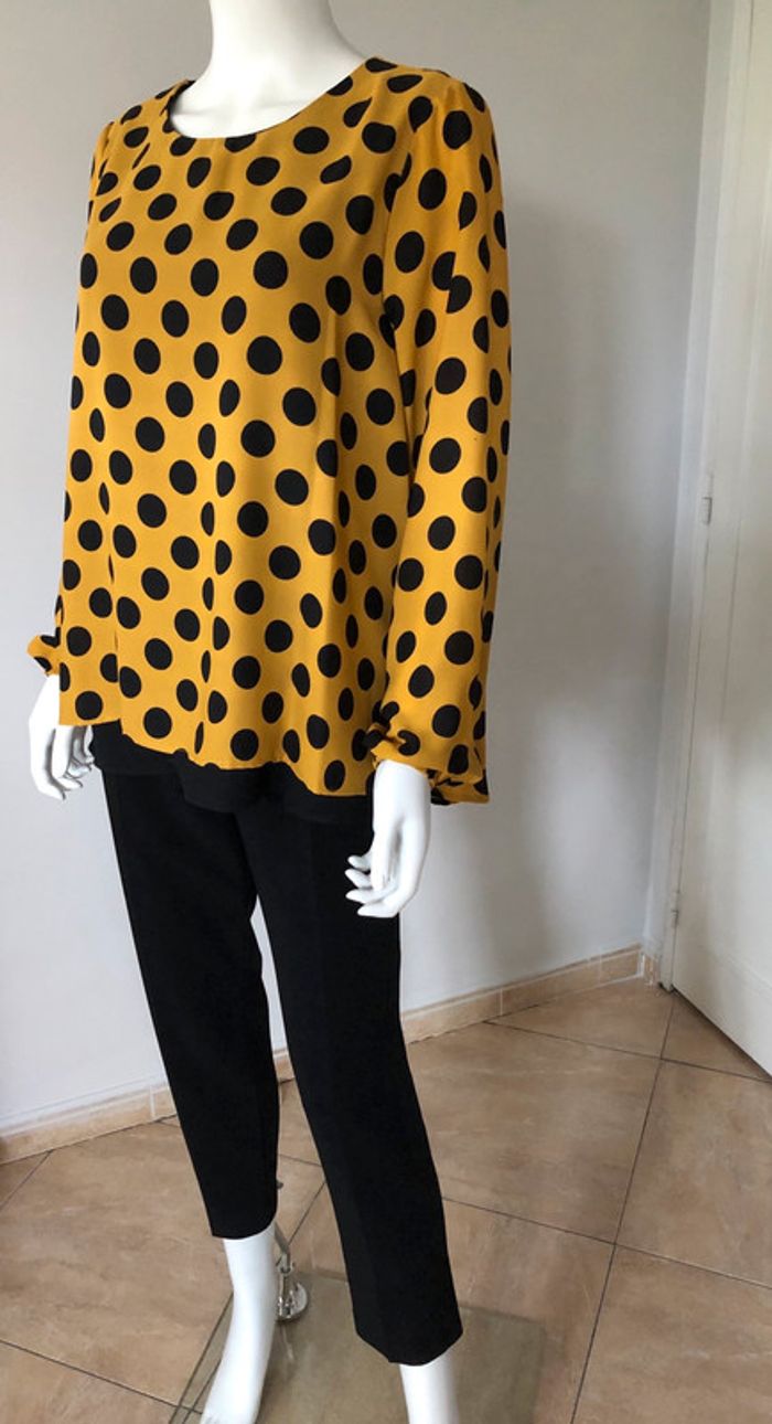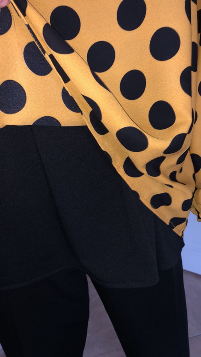 superbe blouse à pois avec sa doublure noir de quelques centimètres plus long, agréable à portée légère de marque italienne