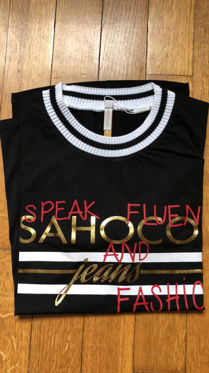 superbe teeshirt en coton avec finitions côtelettes sur les manches et le cou