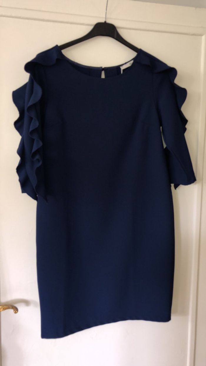 superbe robe droite de couleur bleu nuit originale avec ses effets sur les manches d’une grande marque italienne relish