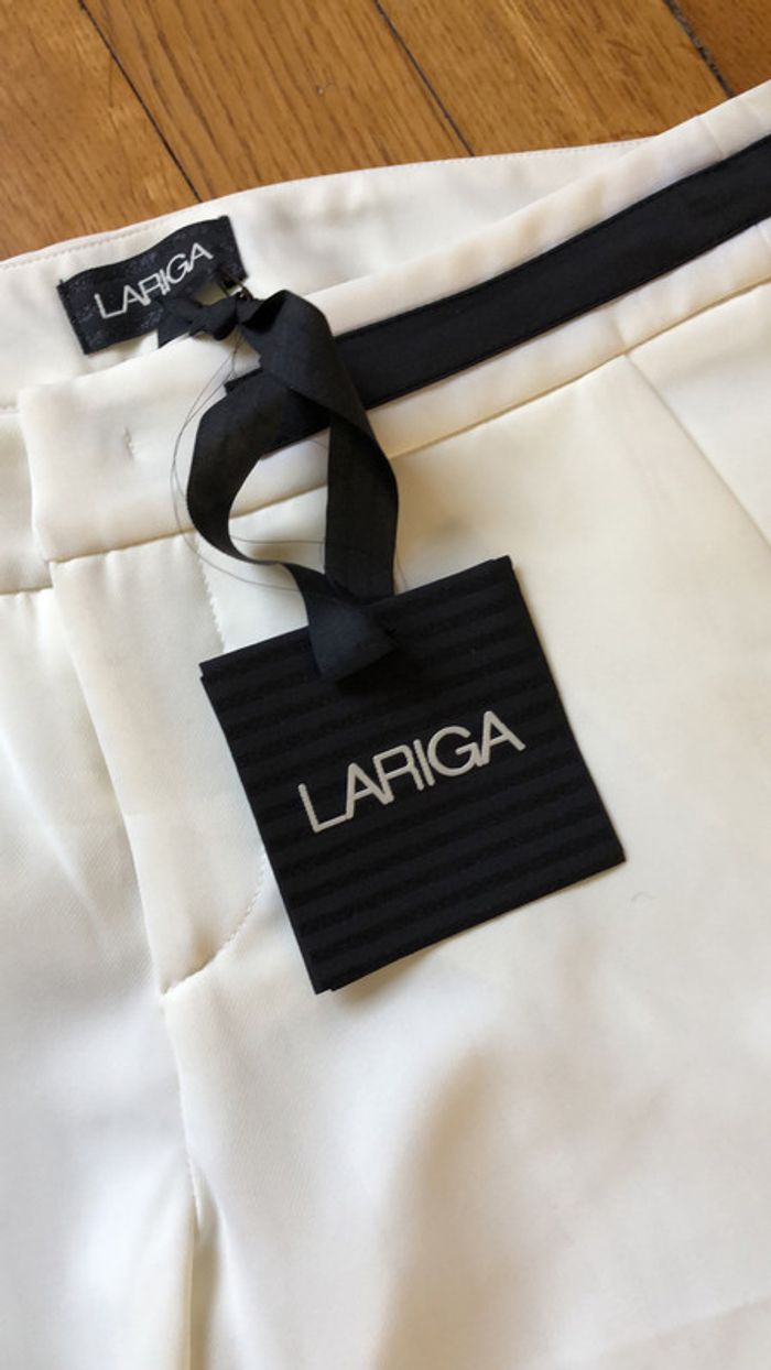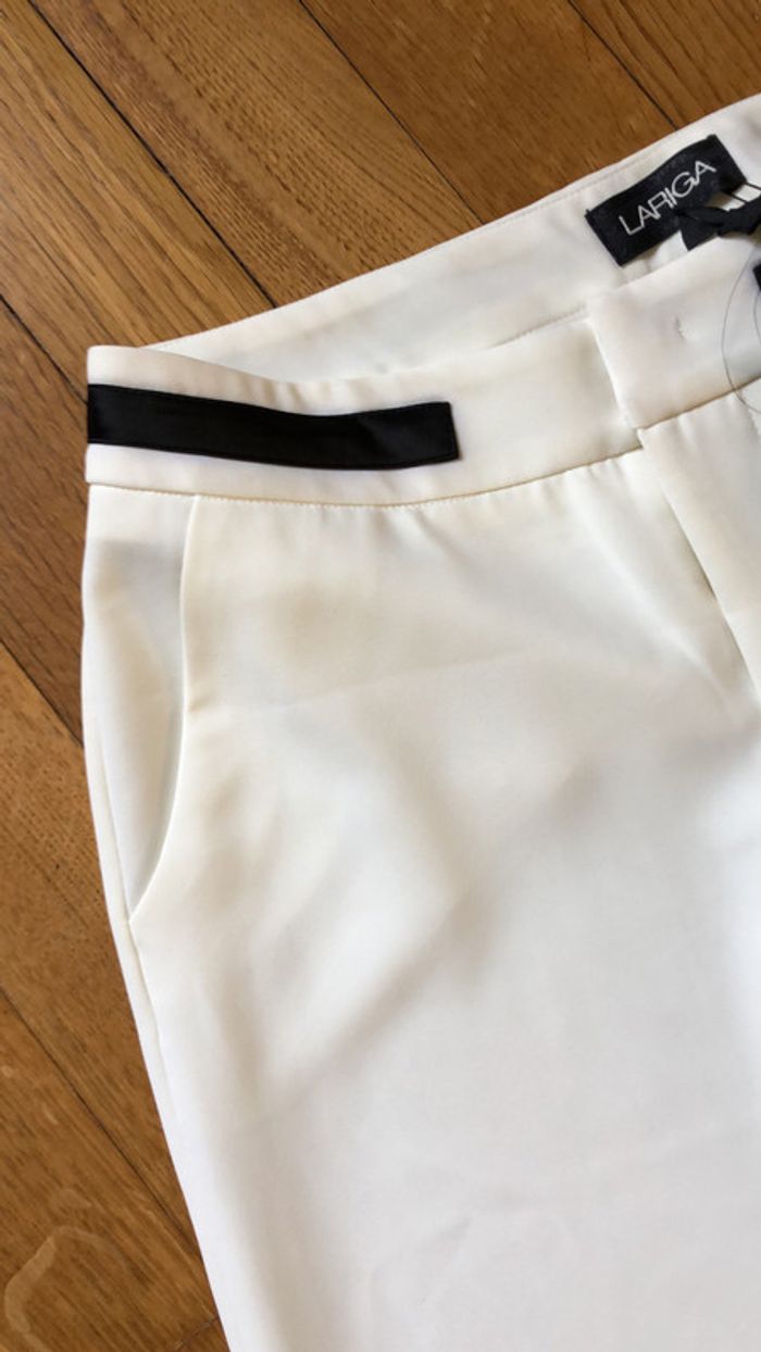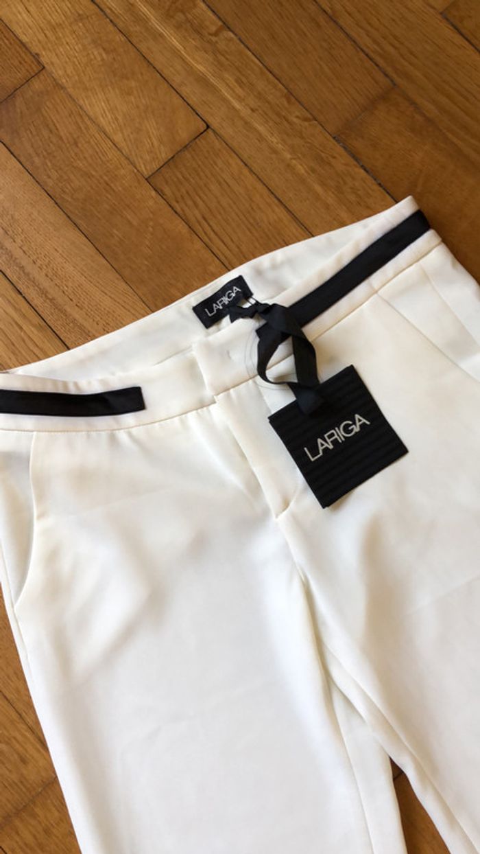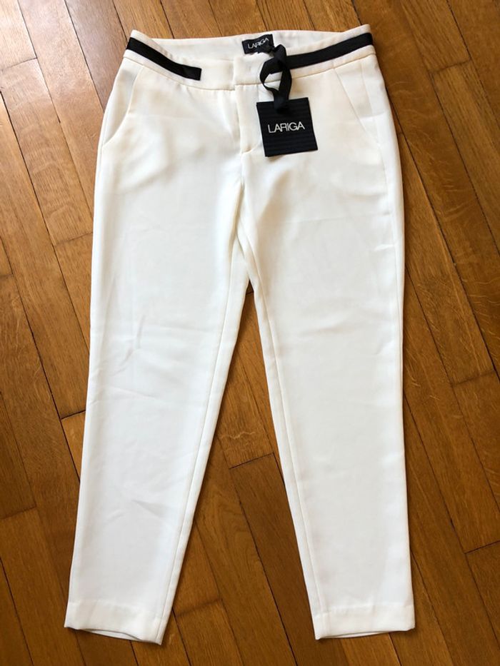 pantalon de la grande marque italienne lariga avec de très belles finitions avec son ruban en satin noir cousue sur la ceinture