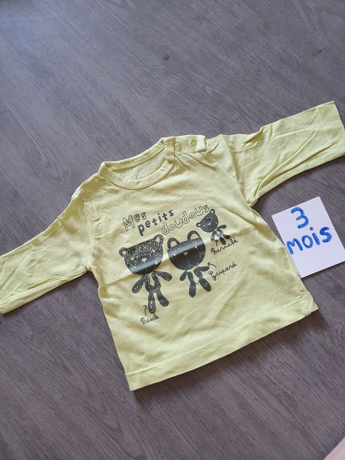 Maillot t-shirt manches longues 3mois garçon Énormément d'autres vêtements disponibles N'hésitez pas a regarder Petit défaut qui ne gêne pas son utilisation voir photo