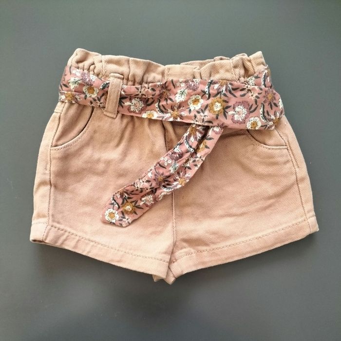 Short vieux rose en jean. Taille élastique et réglable par boutons. Porté mais aucun trou, ni tâche. Ceinture amovible.