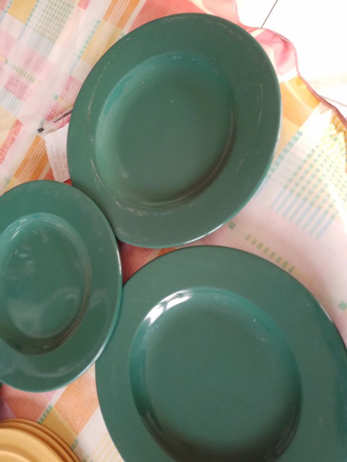 vend 6 grandes assiettes 1 jaune et 1 verte abimé. Envoie rapide et bien emballer