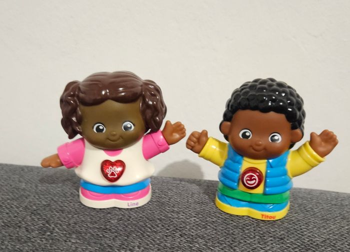 Je vends ces deux TutTut Copains, malheureusement les interactions électroniques ne fonctionnent plus malgré le changement de piles, car les piles ont coulé à l'intérieur. Toutefois, les jouets sont vendus sans piles et ont été soigneusement nettoyés. Ils peuvent encore être utilisés pour jouer de manière classique. Le prix est fixe et non négociable.