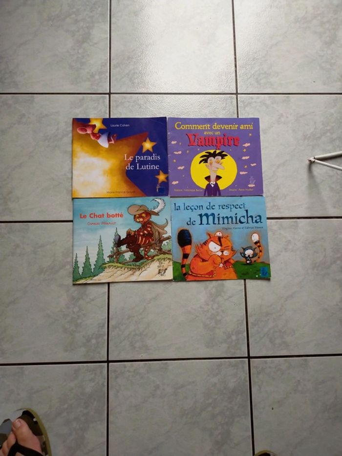 12 livres pour enfants Défaut sur les couvertures des livres mais ne gêne pas son utilisation Prix du lot de 12 livres 6 euros Prix négociable