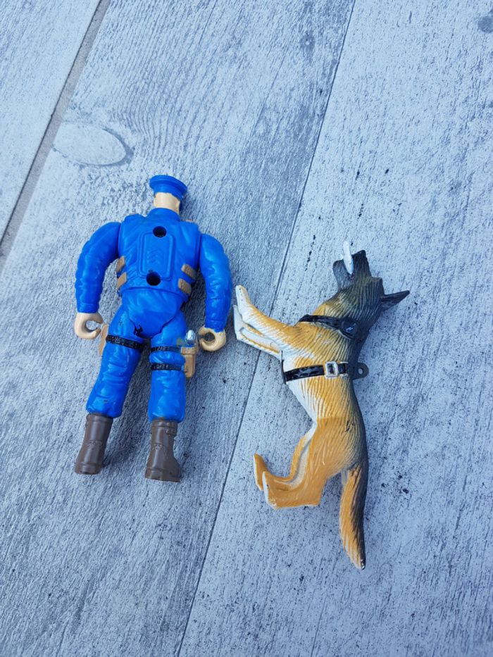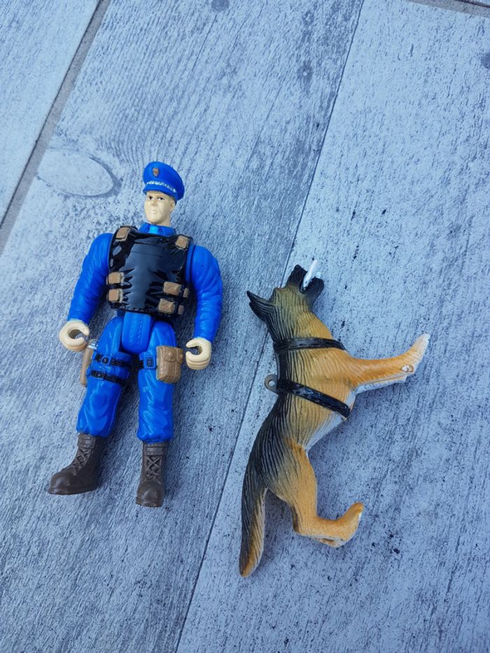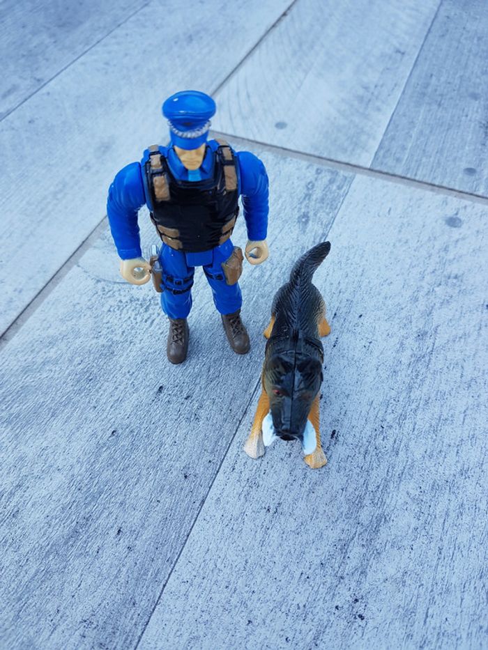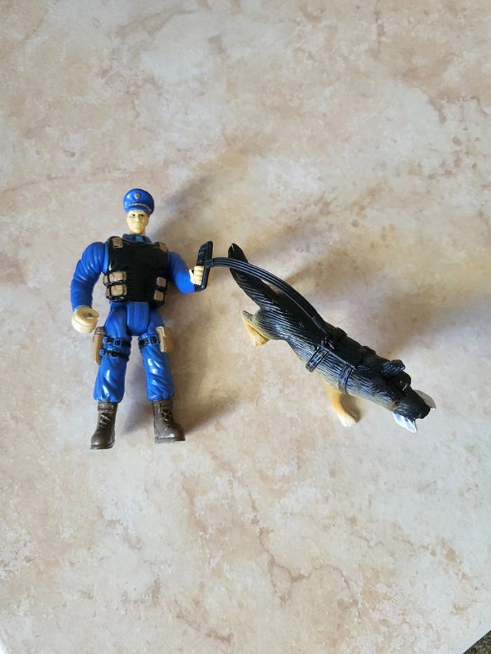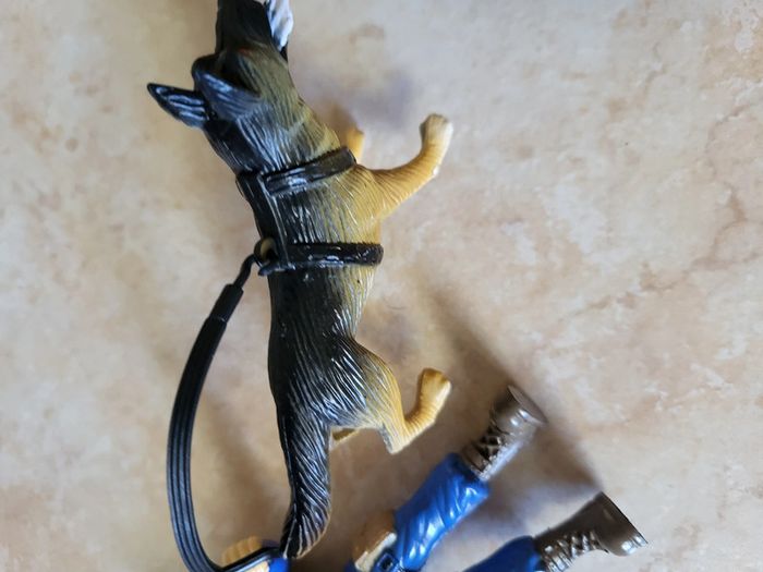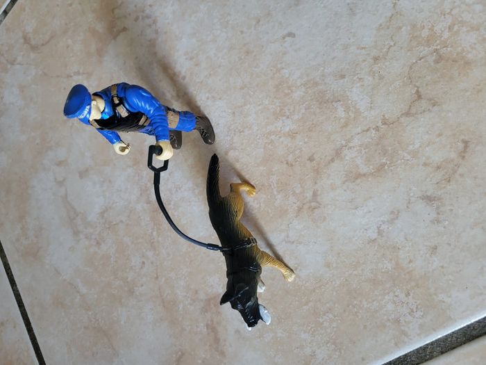 Figurine policier, berger allemand chien avec laisse Figurine articulée Bon état général Action Man ? #SILVERSYNjeux
