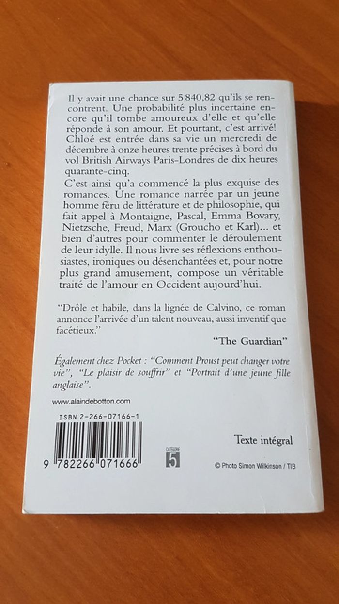 Petite philosophie de l'amour de Alain de Botton Editions Pocket Couverture légèrement abîmée, pages un peu jaunies.