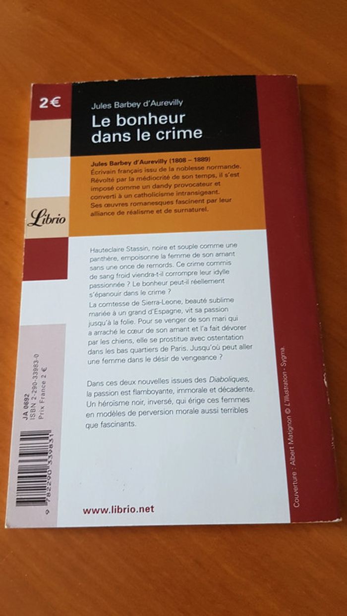 Le bonheur dans le crime de Jules Barbey d'Aurevilly Couverture abîmée Editions Librio #SILVERSYNlivres #SILVLivresAdultes
