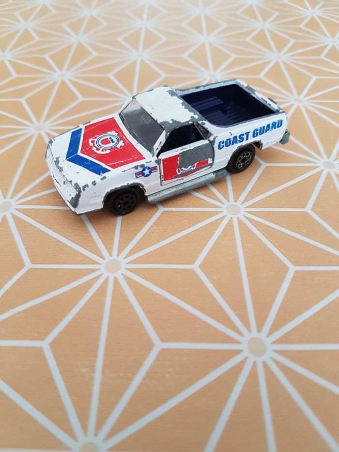 Petite voiture majorette El Camino SS "Coast Guard" Numéro 296 Echelle 1/59 Voiture qui roule, extérieur abîmé #SILVERSYNjeux