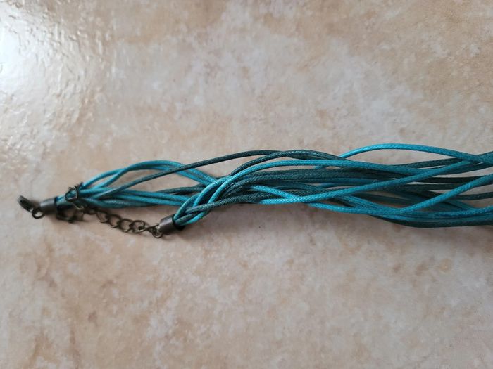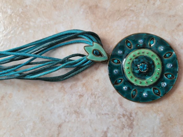 Collier ficelles bleues, gros pendentif bleu, perles Fermoir réglable Quelques marques d'usure #SILVAccessoires
