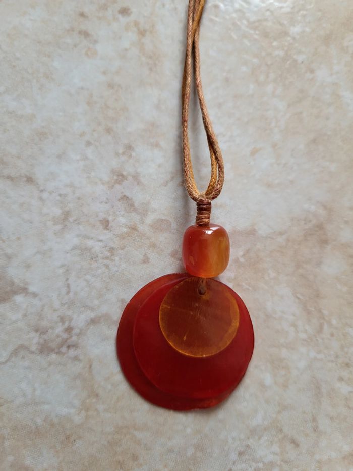 Collier avec ficelles, pendentif rouge orange perles Fermoir réglable Quelques marques d'usure #SILVAccessoires