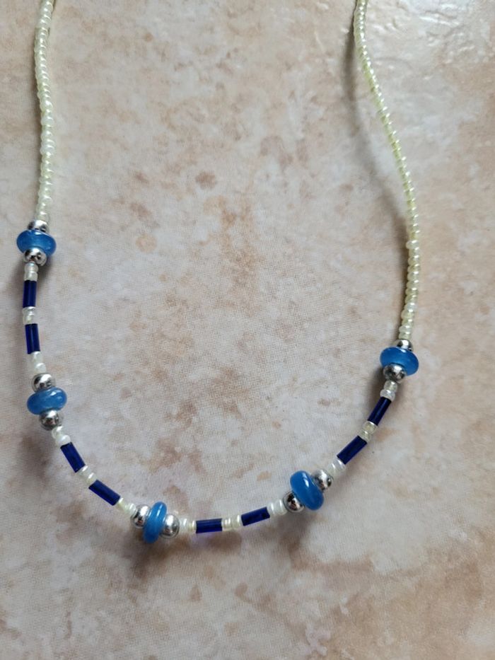 Collier blanc et bleu - photo numéro 2