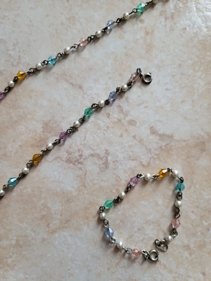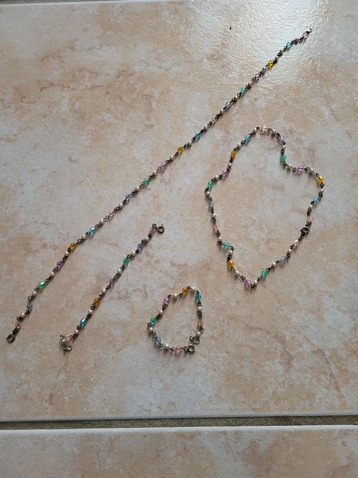 Ensemble collier et deux bracelets et un bracelet de cheville Perles multicolores #SILVAccessoires