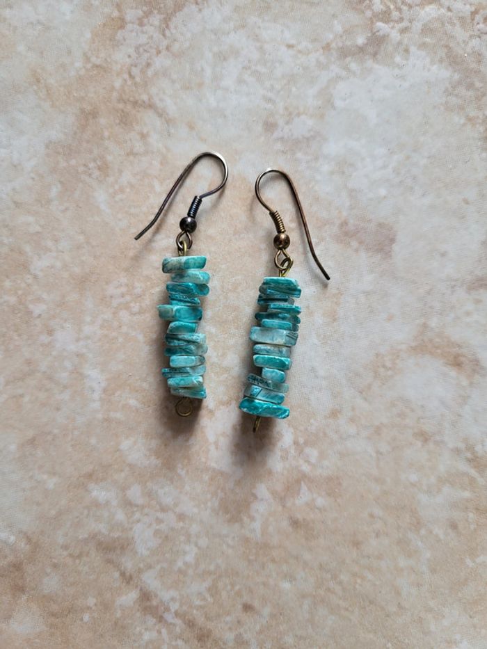Boucles d'oreille pendantes avec accroche Bleu turquoise Vintage #SILVAccessoires