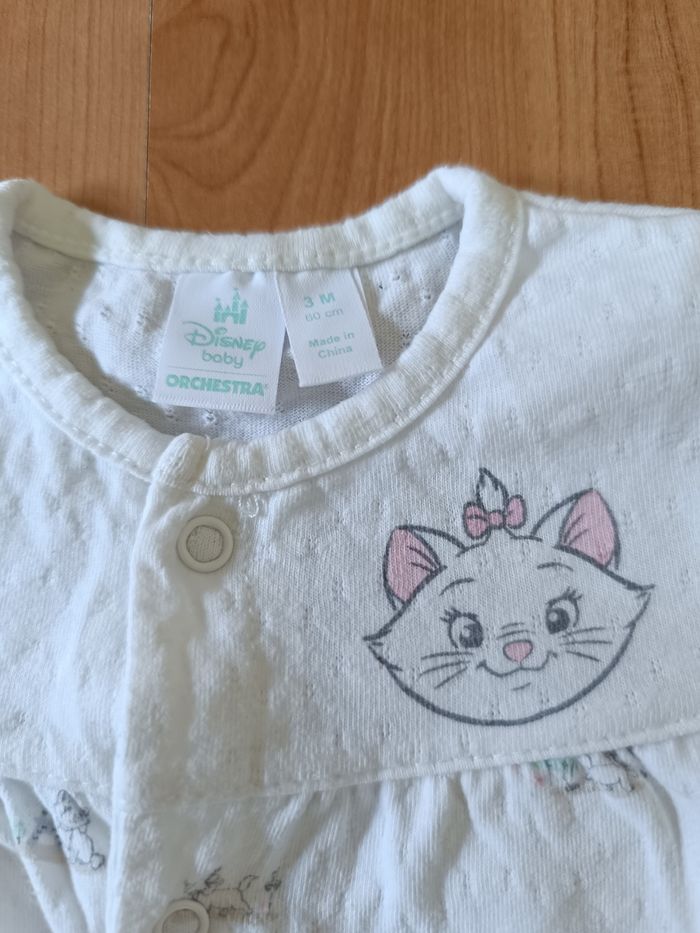 Pyjama fin été bébé fille ouverture devant et entre jambe. Disney Marie des Aristochats. Taille 3 mois. Très bon état. Porté 2 fois. Ni tâches ni trous. Maison non fumeur.