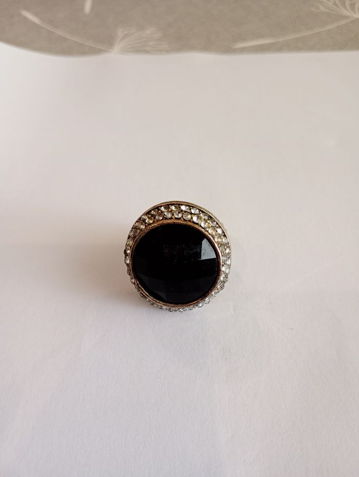 Bague pierre noire strass - photo numéro 1