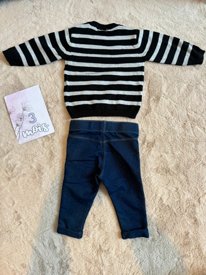 Ensemble pull rayé noir/gris et pantalon jean 2 mois Kiabi - photo numéro 4