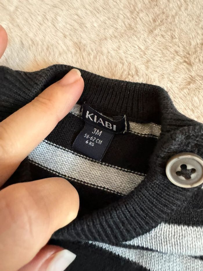 Ensemble pull rayé noir/gris et pantalon jean 2 mois Kiabi - photo numéro 1
