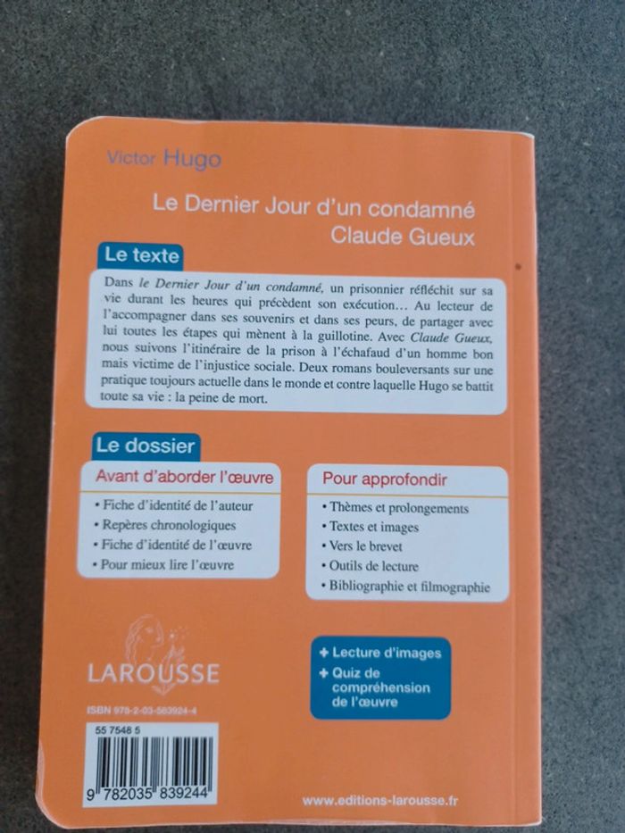 Livre Collège "Le dernierjourd'uncondamné"