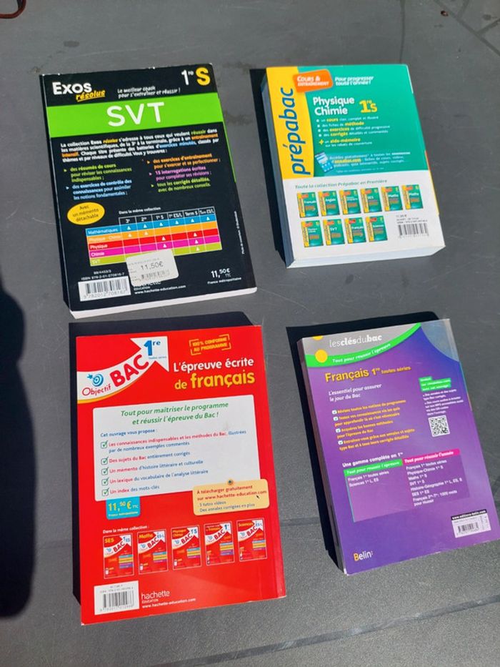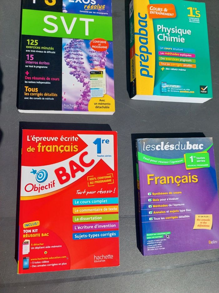 Possibilité d'acheter au détail, me contacter Svt exos résolus hachette Prepabac physique chimie hatier Objectif bac français hachette Les clés du bac français bilingue Le lot 6€