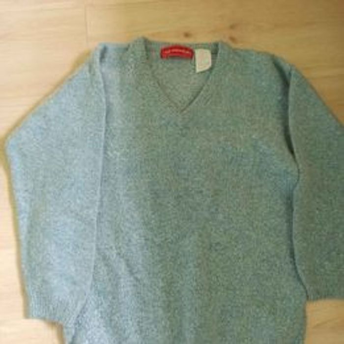pull col V bleu clair chiné 59% soie, 10% angora, 12℅ laine d'agneau et polyamide