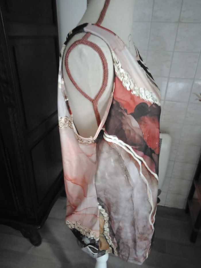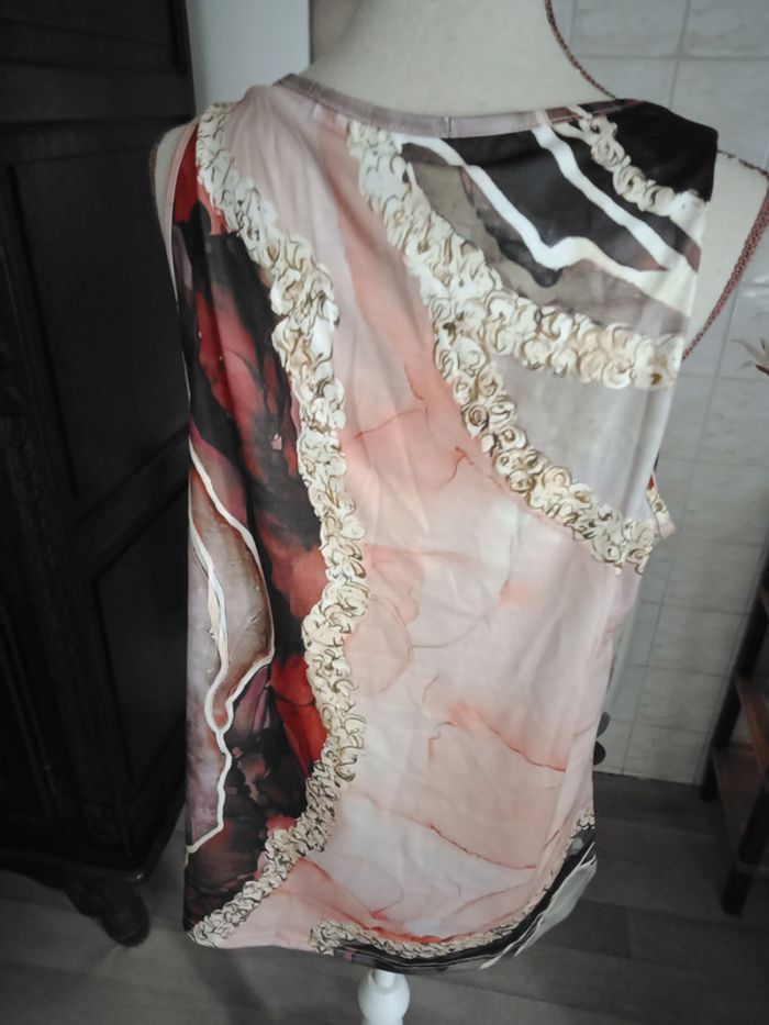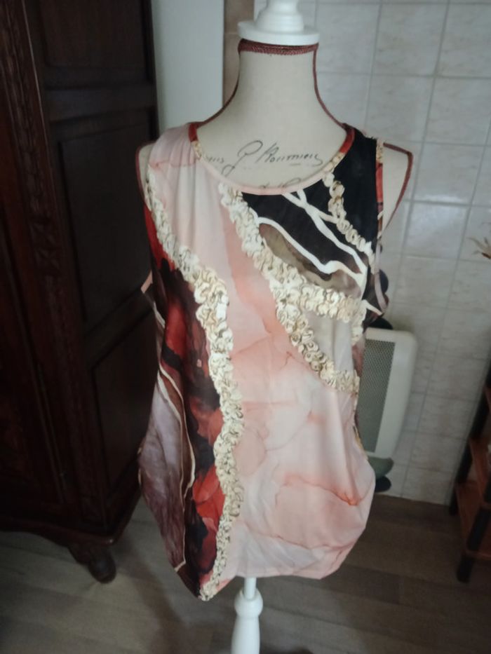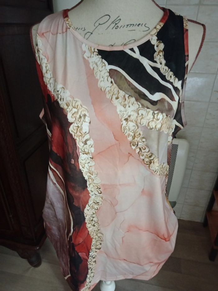 Débardeur multicolores taille XL, en 95% polyester et 5% elastane. Très bon état général.dimensiobs emmanchures 52 cm