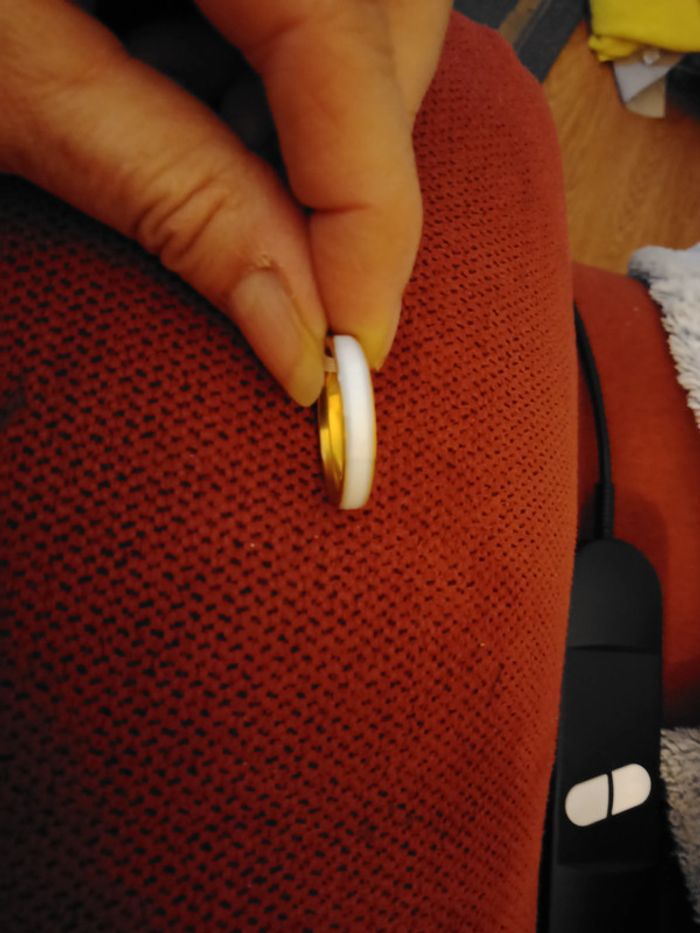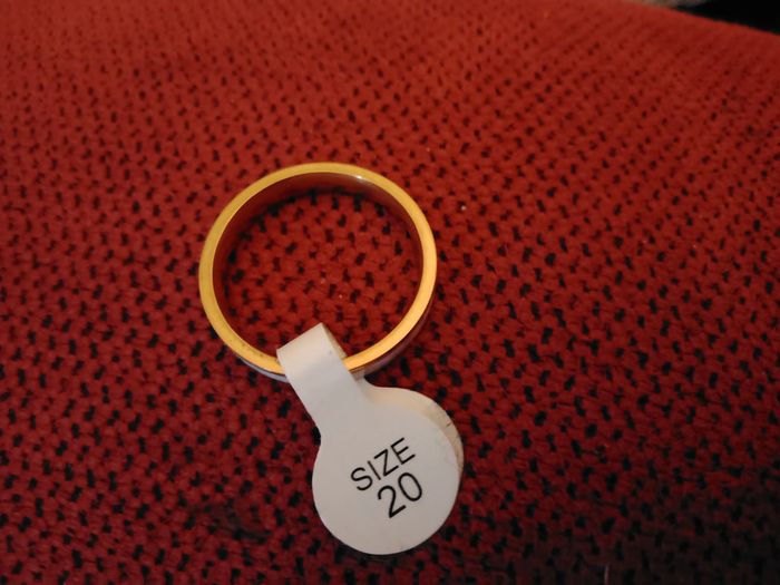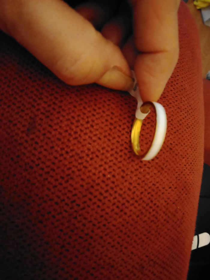 Bague fantaisie blanche et intérieur dorée, dimension 20. Très bon état. En acier inoxydable.