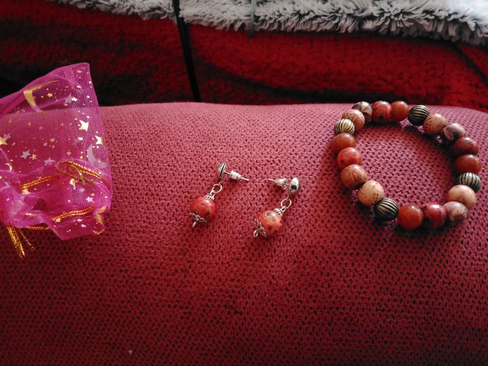 Bracelet perles en bois plus boucles d'oreilles - photo numéro 1