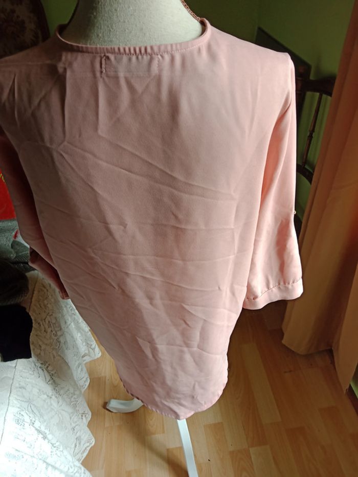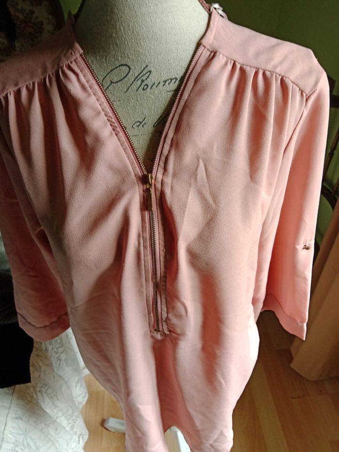 Tunique manches 3/4 pouvant se remonter grâce à un bouton voir photo. Taille 40 de chez Women only en 100% polyester.Dimensions largeur épaules 41 cm longueur 72 cm. En bon état général.