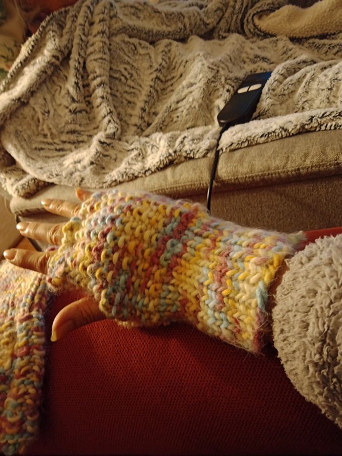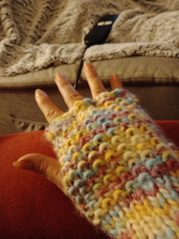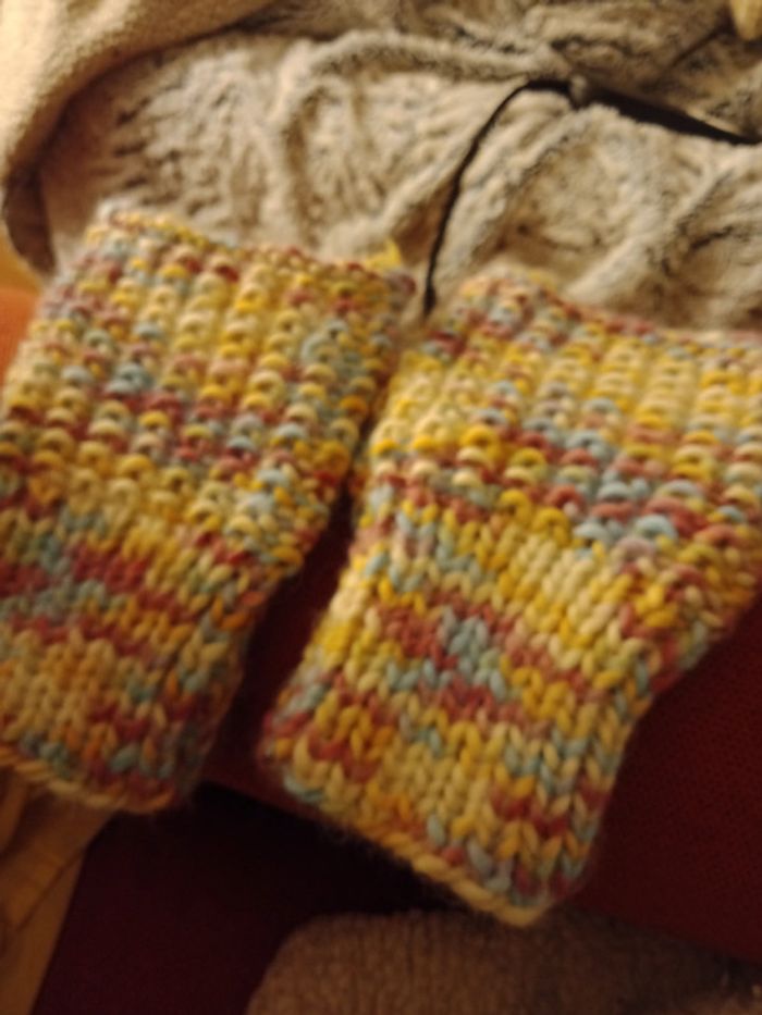 Mitaines tricotées main en laine longueur 18 cm, largeur 12 cm. Neuves jamais portées.