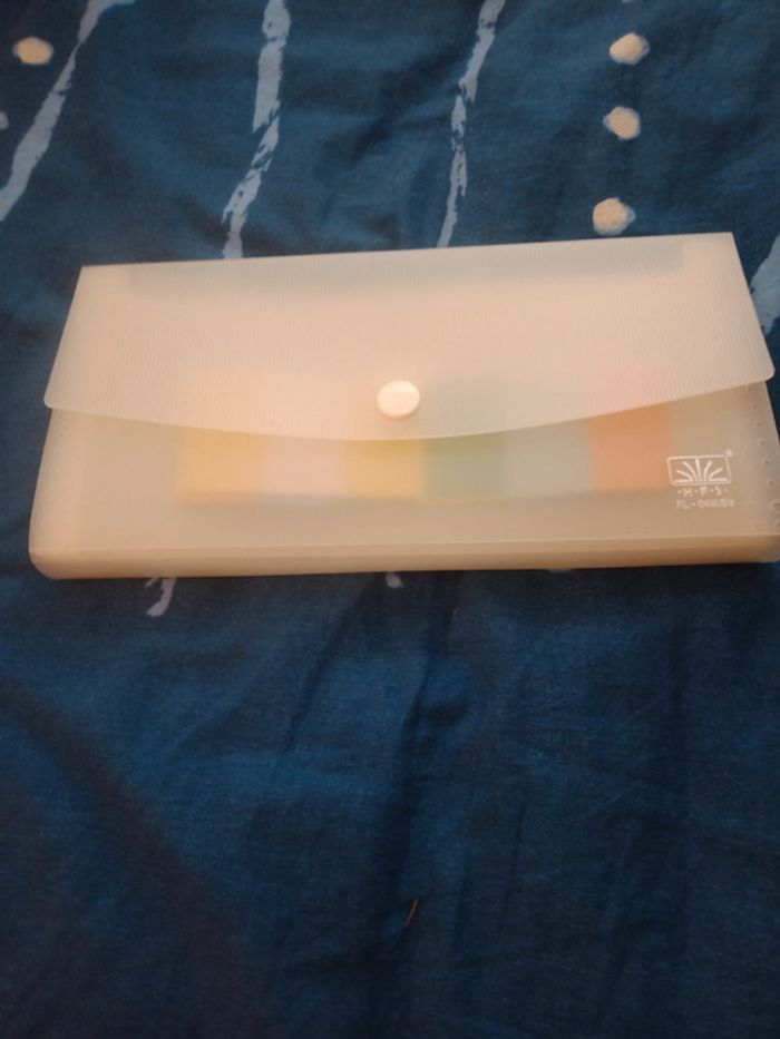Petite pochette pour documents extensible avec étiquettes. Neuve jamais utilisée. Dimensions 26,5 cm longueur et 13 cm hauteur. Très pratique peut se glisser dans un sac.