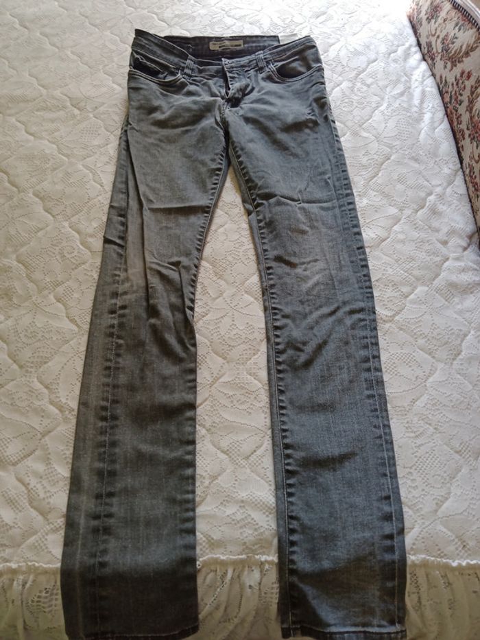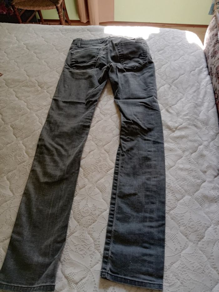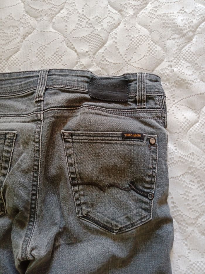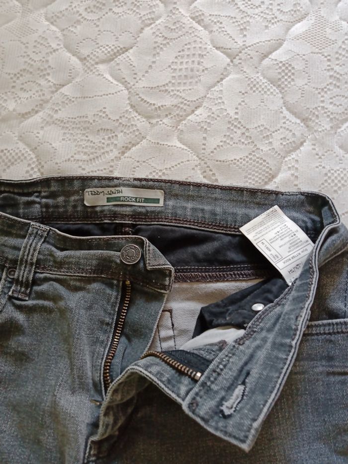 Jeans de chez Teddy Smith, Rock Fit, taille w29 L 34, en 98% coton et 2% elastane. Couleur gris, le pantalon en lui même très bon état, l étiquette derrière à durcit et la petite poche noire devant aussi.