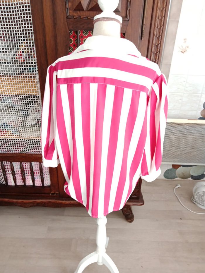 Chemisier manches courtes, taille 44. Très bon état en polyester.