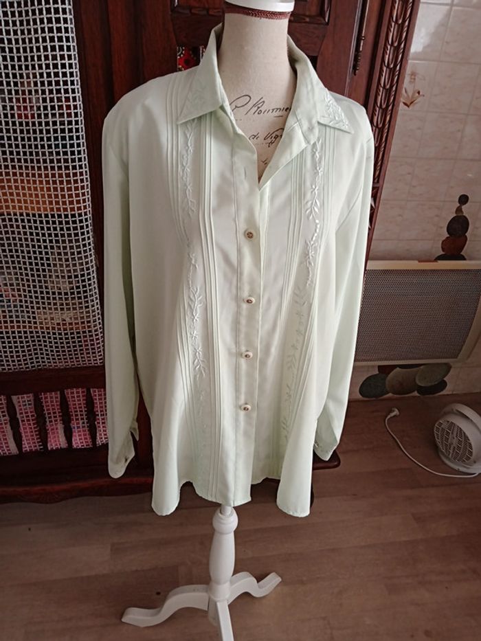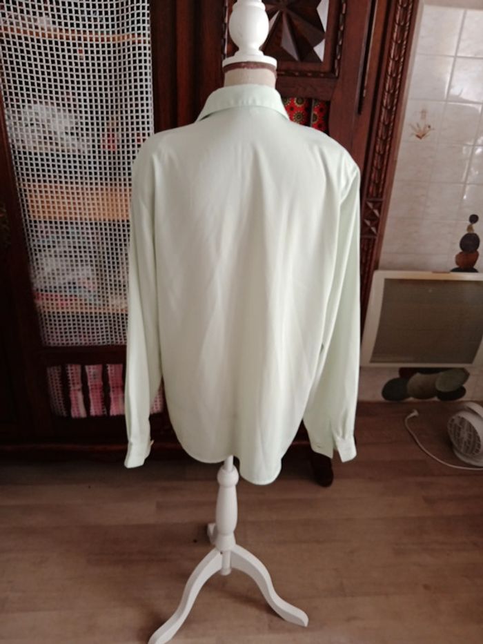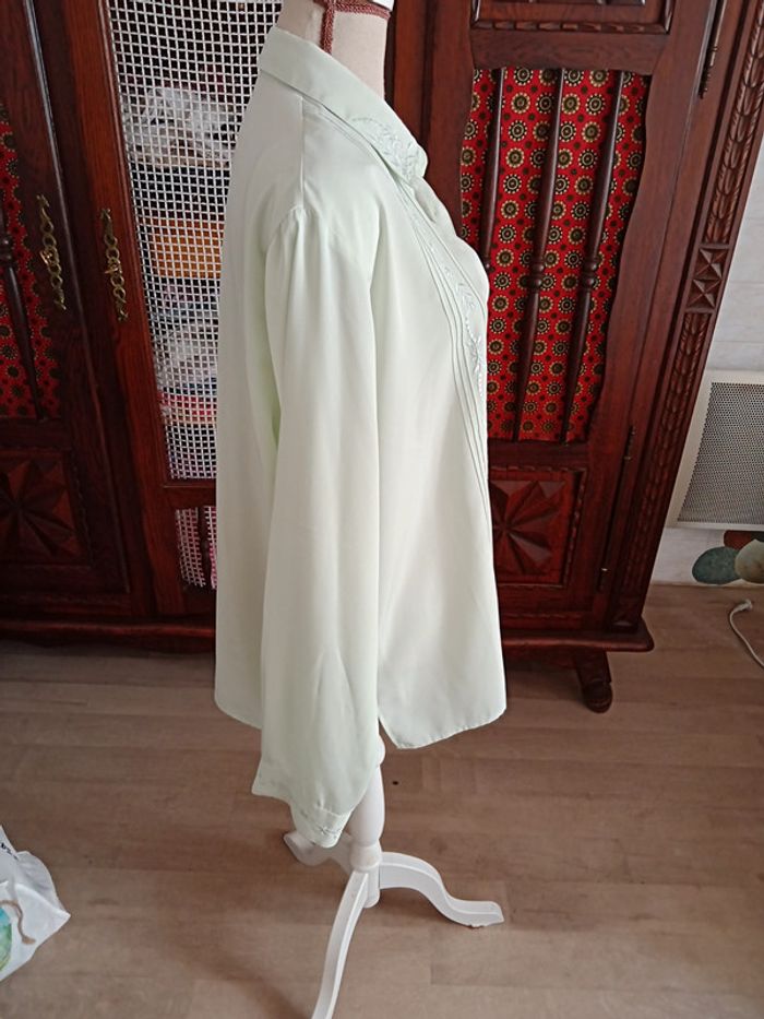 Chemisier manches longues, avec épaulettes,vert d eau, taille XXL, en polyester,. Très bon état.