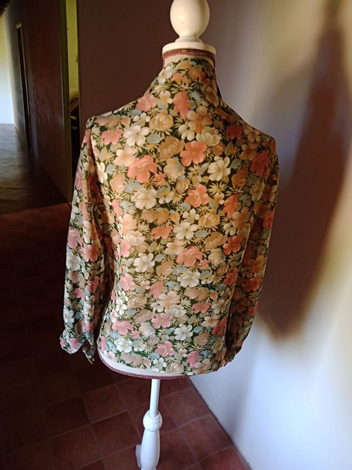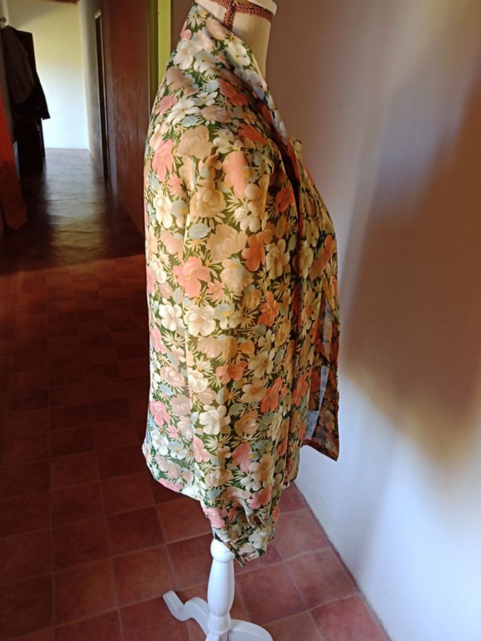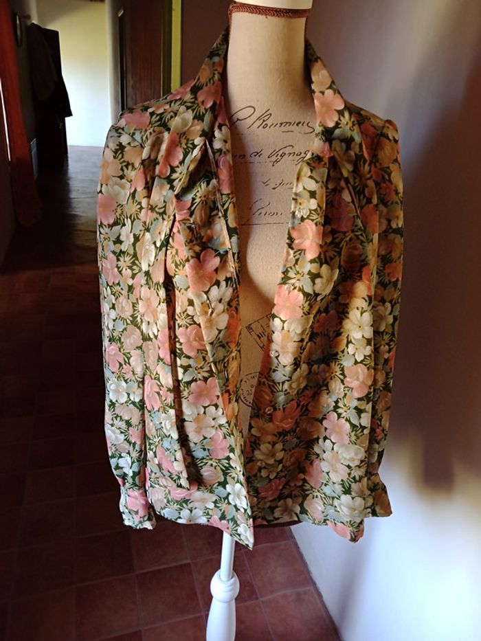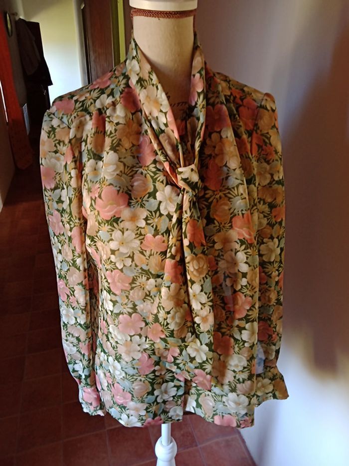 Chemisier manches longues, fleuri avec cravate, taille 38, en mousseline.