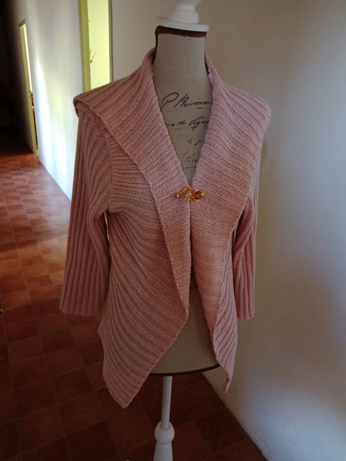 Gilet manches 3/4, en coton, vendu avec broche fantaisie. Taille 40. Très bon état.