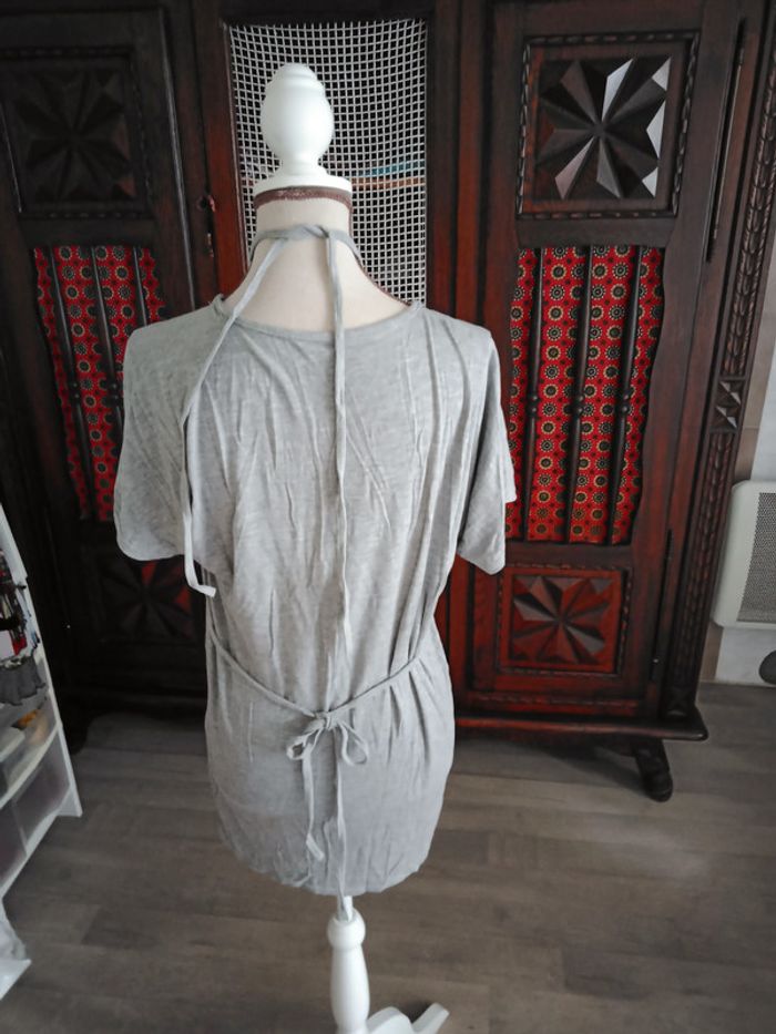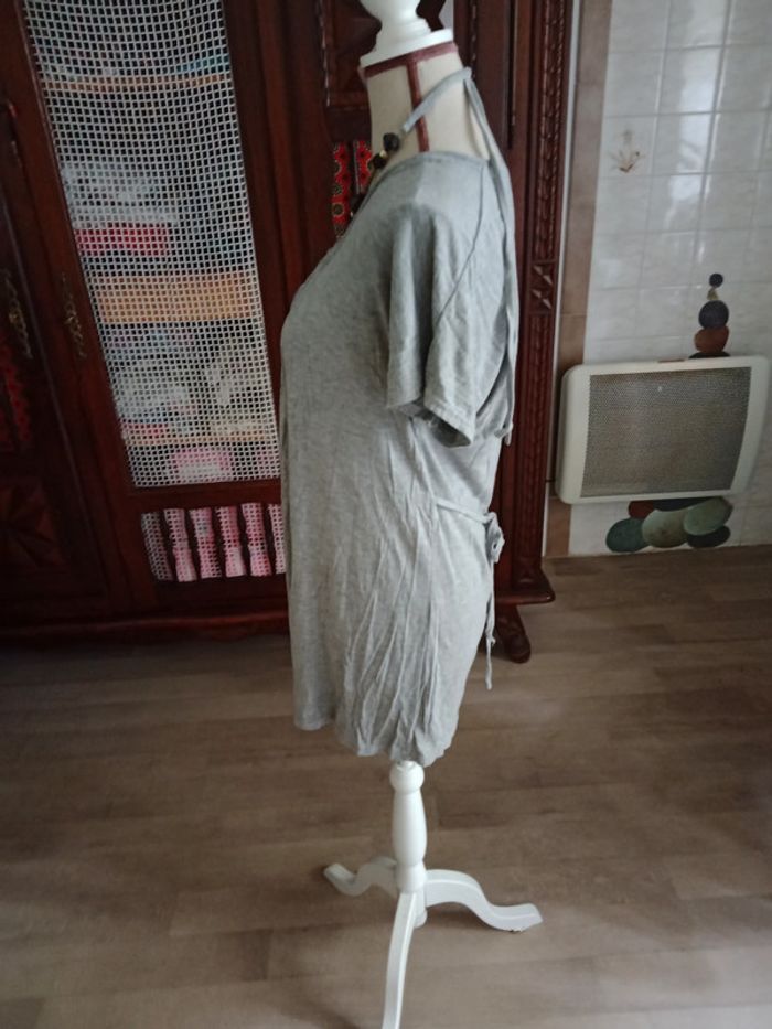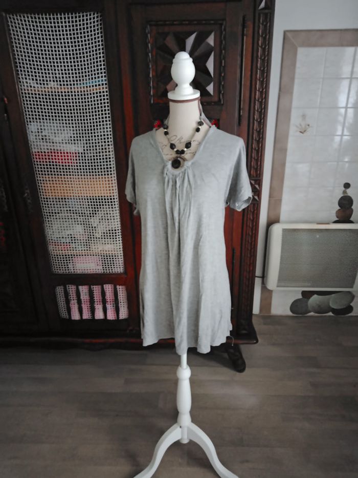 Tunique grise manches courtes, taille unique, fabriqué en France, 95% Viscose et 5% en elastane. Très bon état.